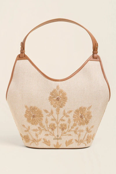 Hey Babe, Introducing the Everly Tote—your new favorite companion for spring adventures. Crafted from papyrus embroidered woven cotton jute, this slouchy carryall combines effortless style with serious functionality. The sculptural silhouette and striking floral details turn heads, while the spacious interior handles everything from your laptop to daily essentials. A secure lobster clasp keeps things safe, and the hidden zip pocket ensures your valuables stay organized. Perfect for warm-weather wandering.