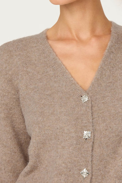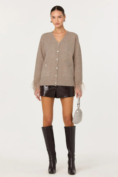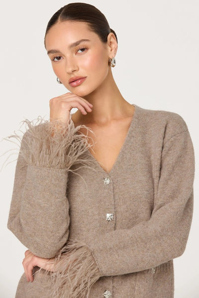 Hey Babe, Elevate your everyday style with this show-stopping cardigan that blends elegance with a touch of whimsy. Featuring dazzling rhinestone-adorned buttons and luxuriously feathered cuffs, it's the perfect piece for transitioning from boardroom to brunch. The soft brushed knit fabric drapes beautifully with a flattering V-neckline, while practical front pockets keep you both chic and functional. Whether you're layering for warmth or making a statement, this cardigan delivers sophistication with a playful edge.