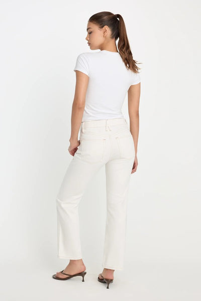 Mid-rise-Straight legs-Ankle length-Clean hem-Comfort stretch-Classic 5-pockets-Front zip-fly closure-Gap-proof waistband-Reinforced belt loops-Tummy smoothing technology-White wash-Inseam: 27.5"