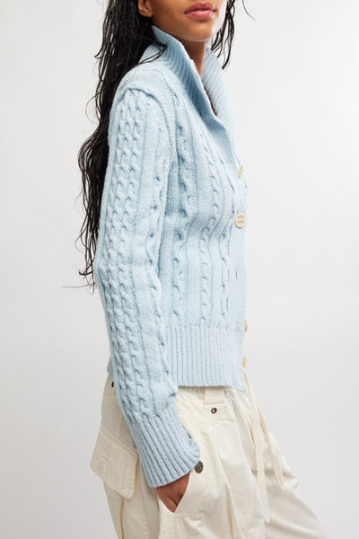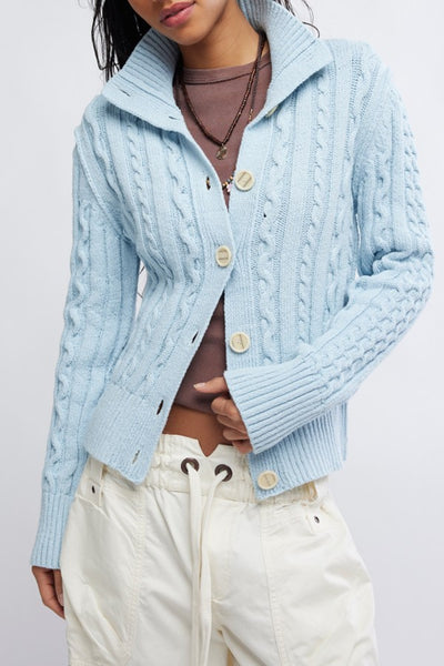 Hey Babe, Wrap yourself in effortless style with this adorable cardigan—complete with a textured cable knit pattern and a sweet collar that steals the show. Layer it over anything from basic tanks to delicate sheer pieces and instantly elevate your look. Cozy meets cute in one versatile piece that's ready for whatever your day brings.