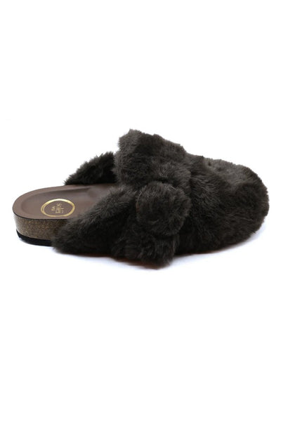 Luxe Faux Fur Upper-Elevated Hardware-Cushioned Footbed & Arch Support-Vegan & Eco-Conscious Materials-Whole sizes only. Fits true to size.