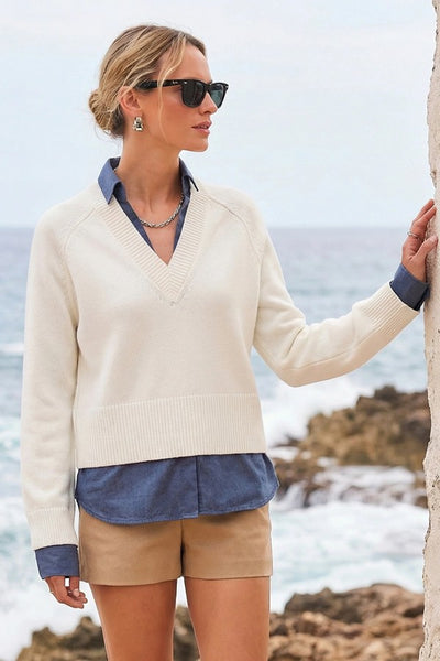 Hey Babe, Get the layered-look magic without the closet clutter. The Carrie Mixed Media Sweater pairs a buttery-soft knit with clever woven details at the collar and hem, giving you that "I'm wearing two things" vibe in one piece. Drop shoulders and a relaxed fit keep it comfy, while ribbed trim adds just enough polish. Long sleeves, effortless style, zero fuss.