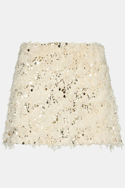 Mini skirt-All-over feather material-Gold sequin embellishments
