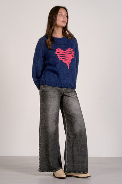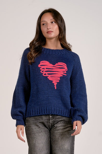 Hey Babe, Wrap yourself in cozy charm with this navy crewneck sweater, complete with a whimsical pink heart design on the front. Impossibly soft and effortlessly cute, it's the perfect piece for adding a touch of playful warmth to your everyday wardrobe.