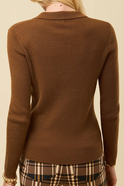 Hey Babe,  Elevate your autumn wardrobe with the Nellie Polo Sweater—a luxe blend of warmth and polish in a gorgeous toffee hue. This 100% Merino wool beauty features a sleek half-zip and refined leather accents that take it from casual to chic in seconds. Buttery soft and endlessly versatile, it's the perfect layering piece for those in-between weather days. Pair it with the bestselling Maren pants and call it a day—no styling stress required!