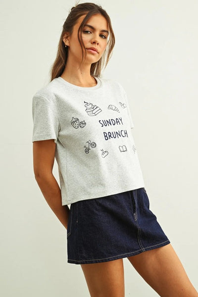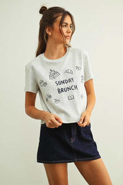 Hey Babe, This premium embroidered tee transforms your casual wardrobe with stitched-in charm. Coffee cups, croissants, strawberries, and books dance around playful "Sunday Brunch" lettering, creating texture and depth that printed designs simply can't match. Soft, breathable fabric pairs with a classic fit for effortless style that works whether you're hitting your favorite café or lounging at home. Cute meets polished. Playful meets quality.