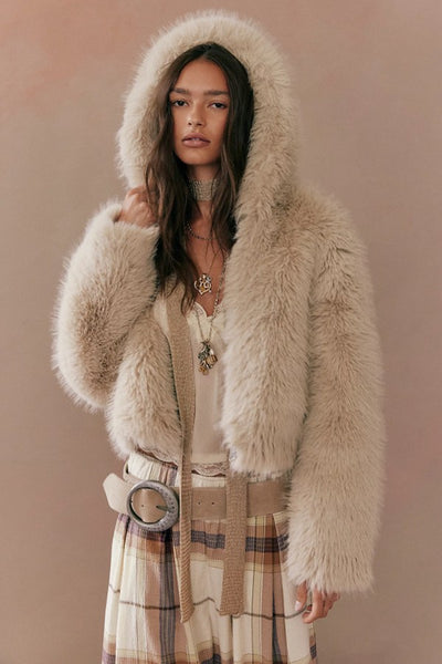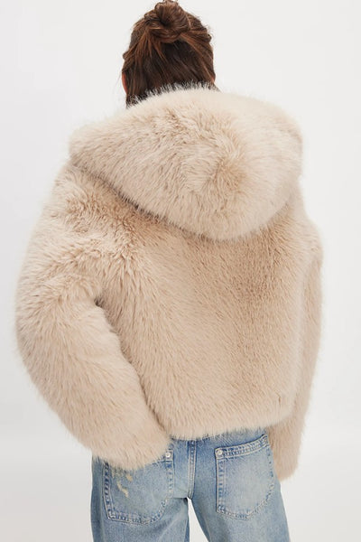 Cropped fit-Faux fur fabrication-Attached hood