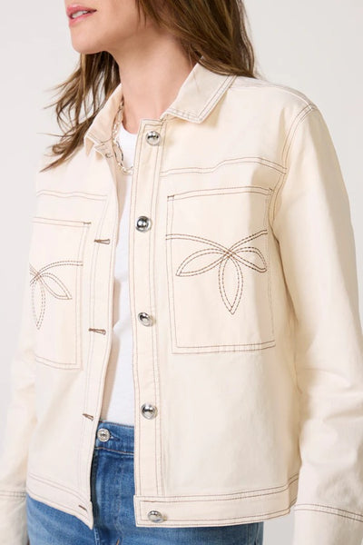 Hey Babe, Effortlessly chic and versatile, this jacket blends Western charm with modern sophistication. Crafted from a soft cotton-elastane twill, it features refined Western-inspired stitching, a crisp point collar, functional chest pockets, and polished silver buttons. The perfect layering piece for elevated casual style.