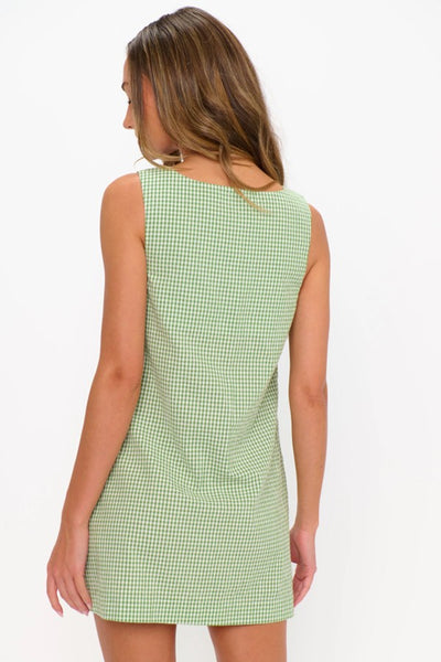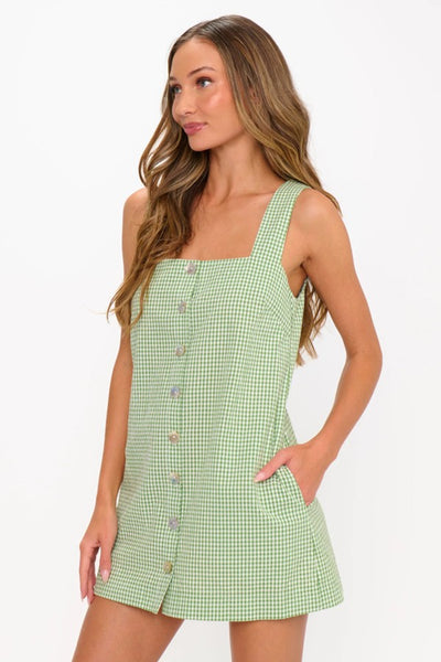 Hey Babe, Picture yourself twirling through sun-dappled gardens in this charming green gingham mini. The square neckline and front button details add just the right amount of vintage-inspired flair, while the relaxed boxy cut keeps things effortlessly comfortable. Whether you're sipping lemonade on a porch or exploring a farmers market, this countryside-chic dress is your new spring essential.