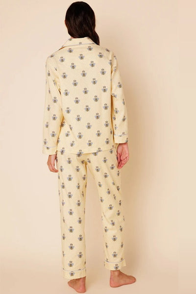 100% Pima Cotton-Contrast piping-Full length PJ pant with pockets-Waist has 3/4" elastic and a full drawstring-Machine wash cold / tumble dry low / no bleach